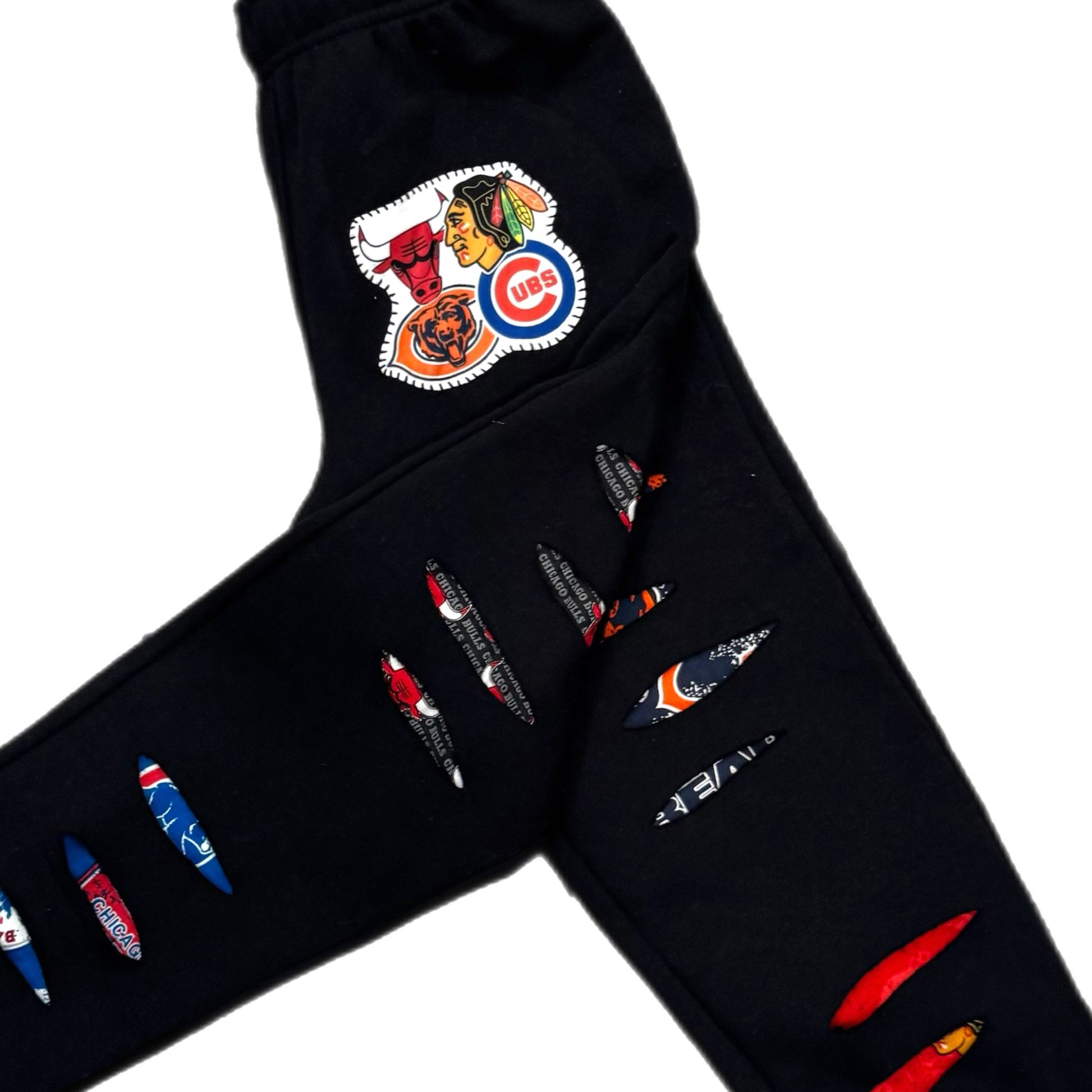How awesome are these Chicago sports teams inspired joggers!? These gray or black joggers are cut and backed with Chicago teams fabric.