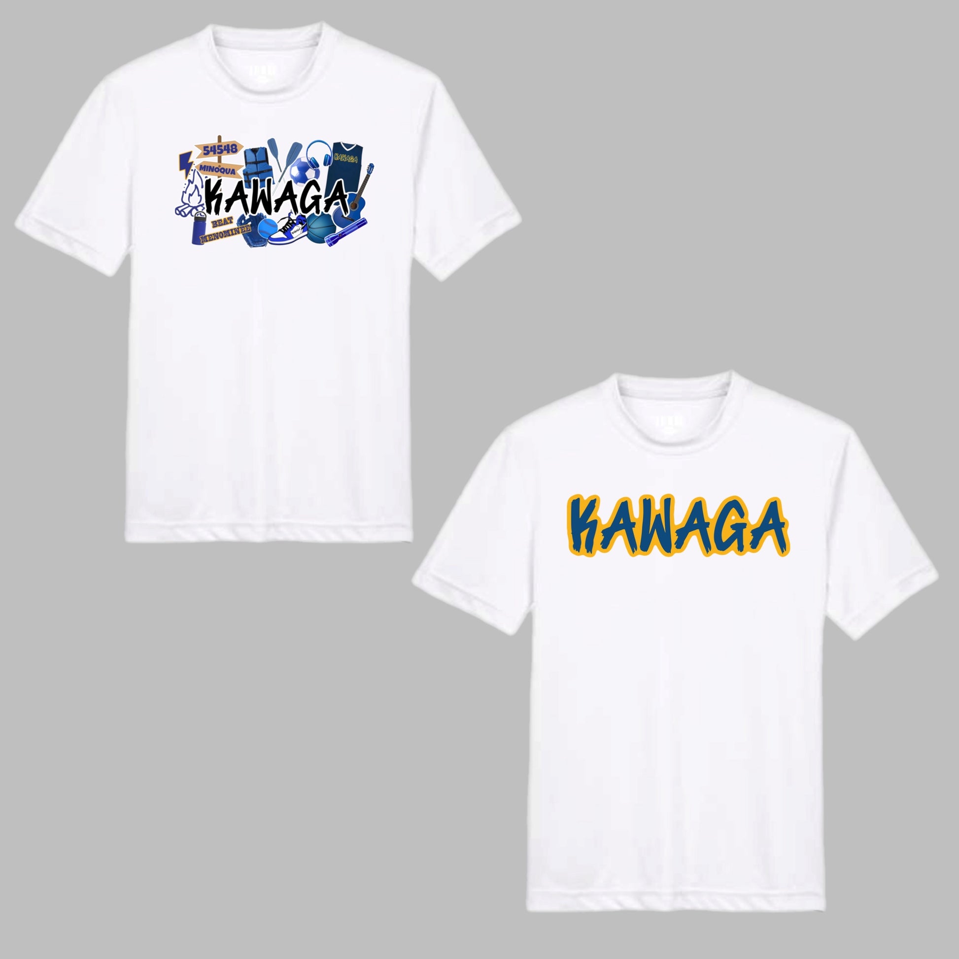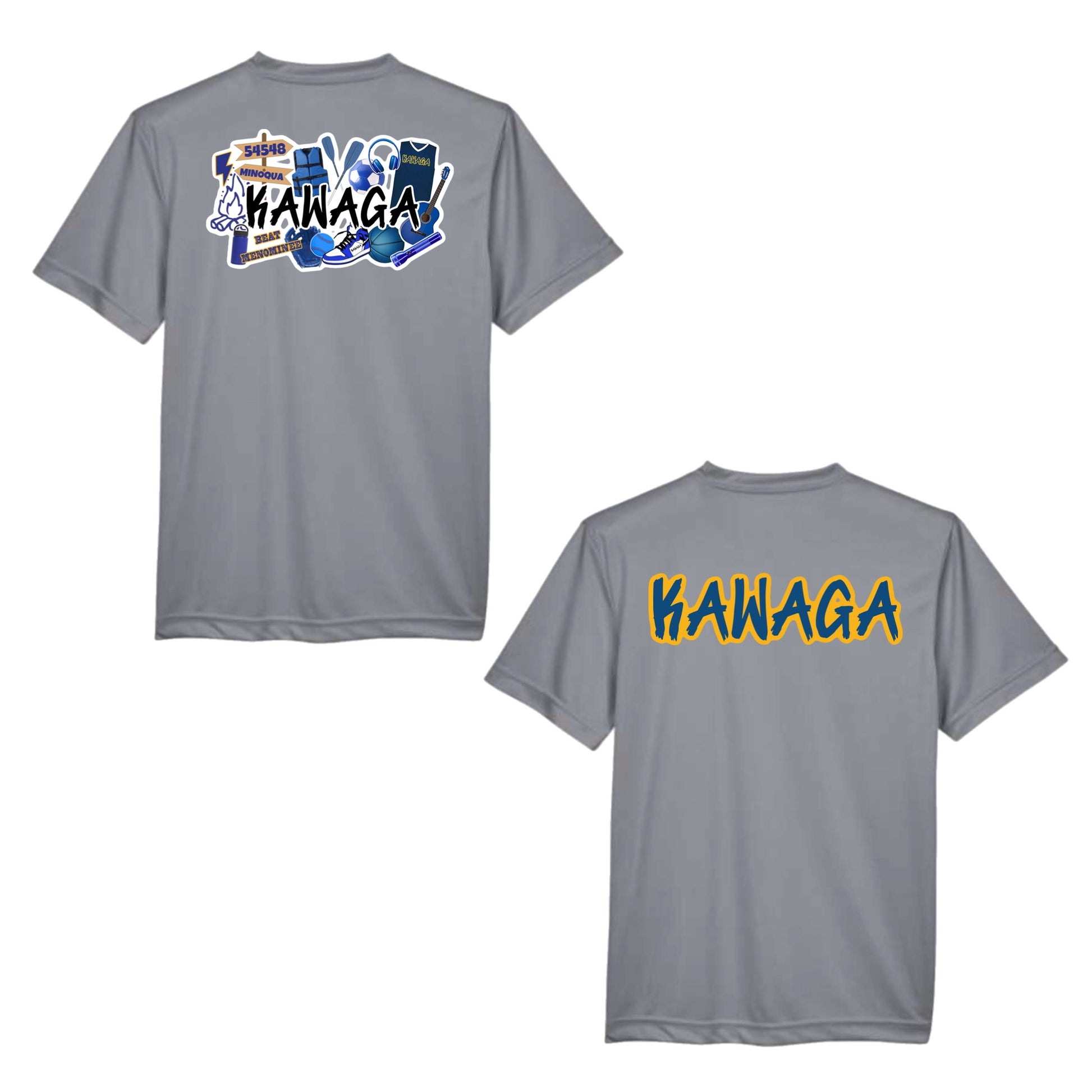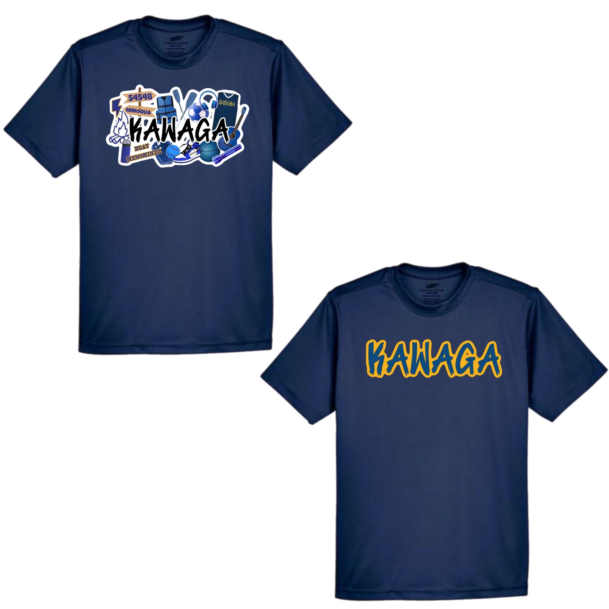 Show your Kawaga spirit with this awesome Kawaga graffiti performance, moisture wicking tee. This tee is available with the collage image (pictured on left) or the camp name (pictured on right)