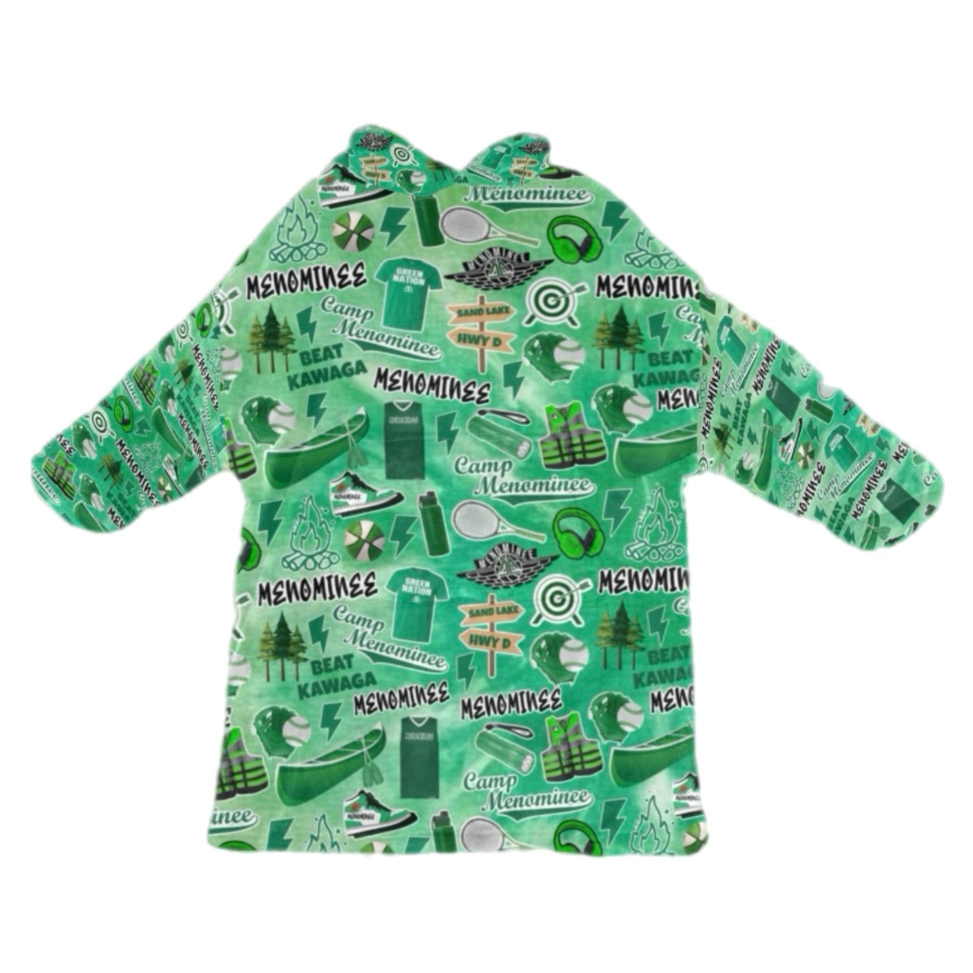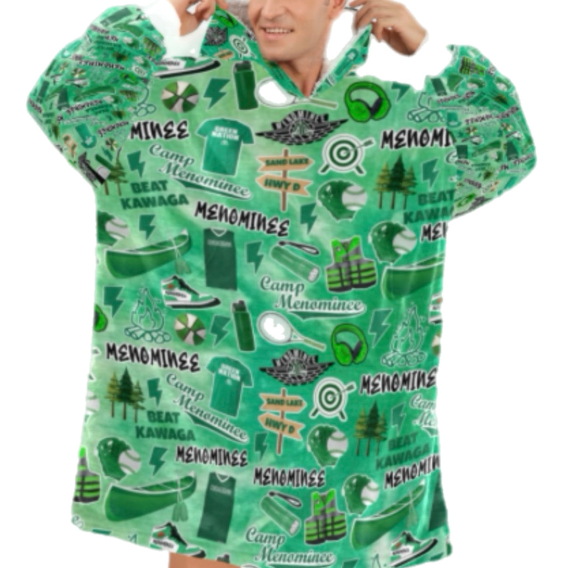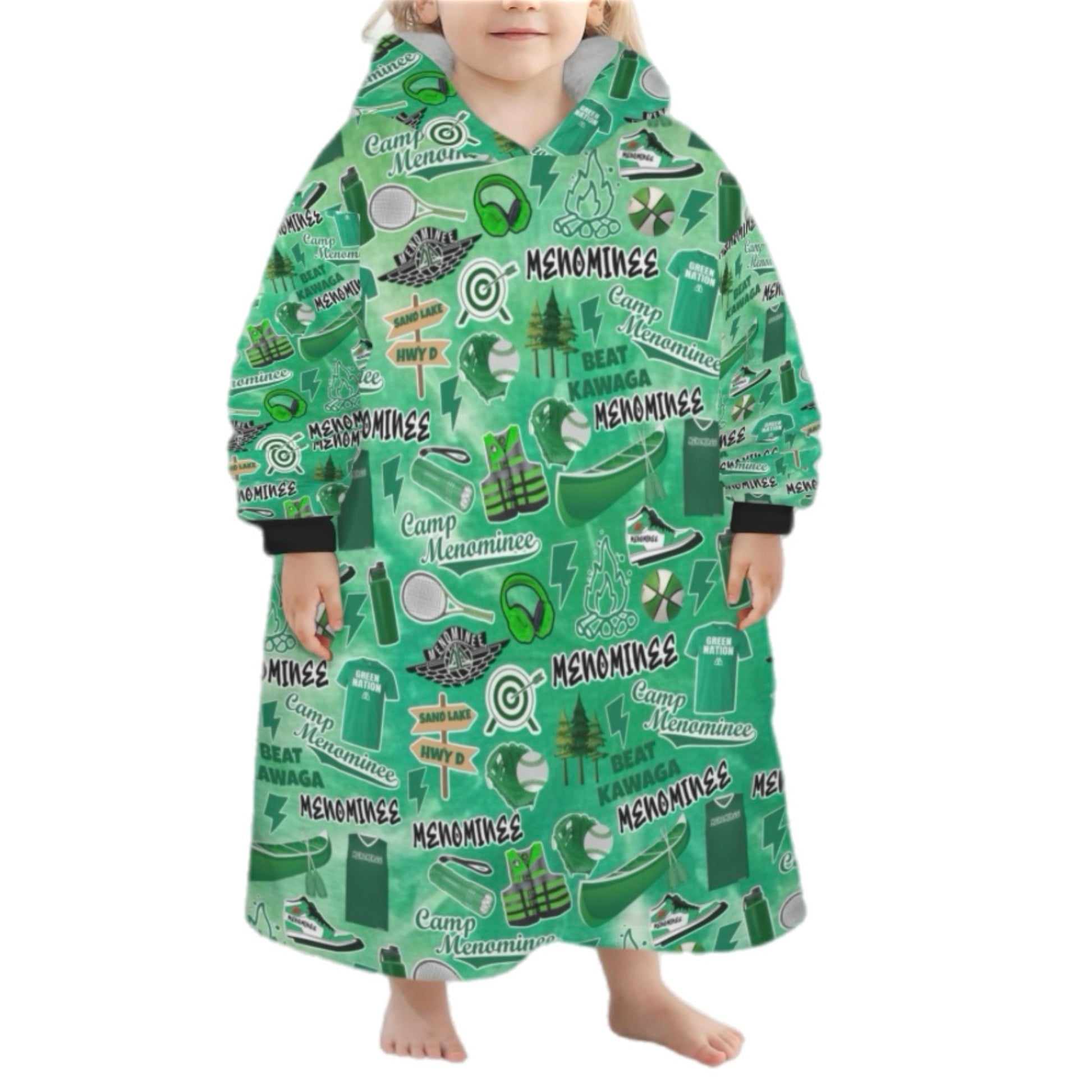 Show your Menominee spirit with this cozy and super soft fleece blanket hoodie. This hoodie comes in toddler, youth, and adult sizes.