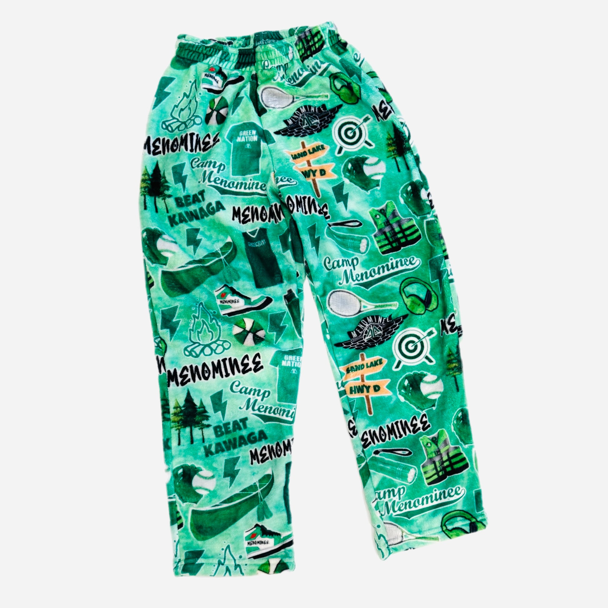 Show your Menominee spirit with this cozy fleece pants. These pants come in toddler, youth, and adult sizes.