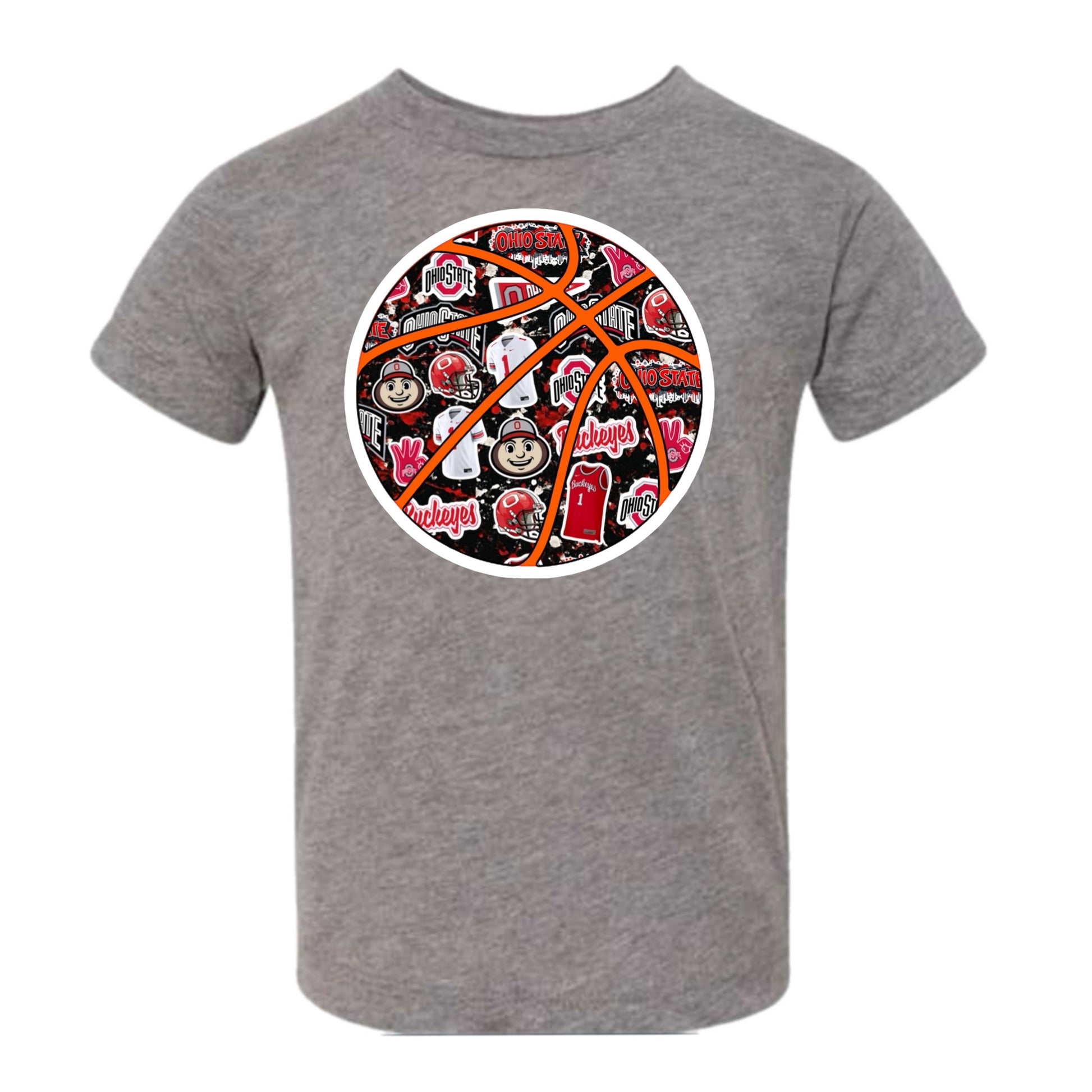 Show your Ohio State pride with this awesome basketball tee. This shirt comes in black, gray, or red!