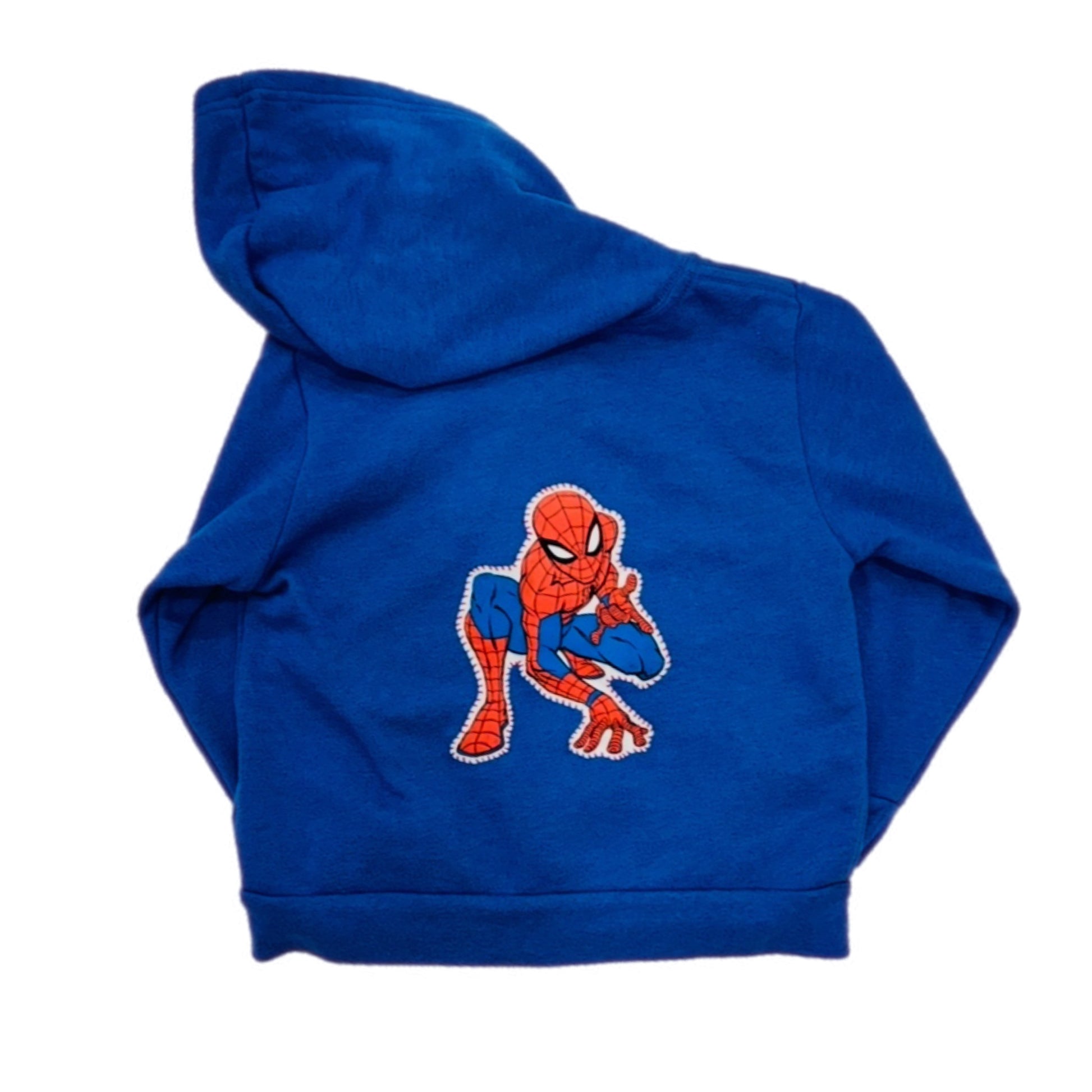 This spider superhero hoodie is perfect for your favorite superhero. It is a soft fleece lined, zip up, sweatshirt.